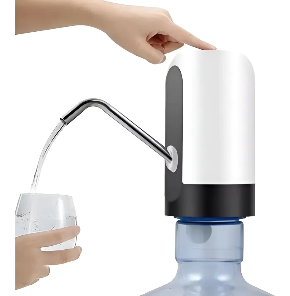 Práctico y moderno dispensador automático de agua para bidones. Funciona con batería recargable por USB, ideal para el hogar, oficina o camping. Solo apoyás el dedo sobre el botón superior y el agua comienza a salir sin esfuerzo.