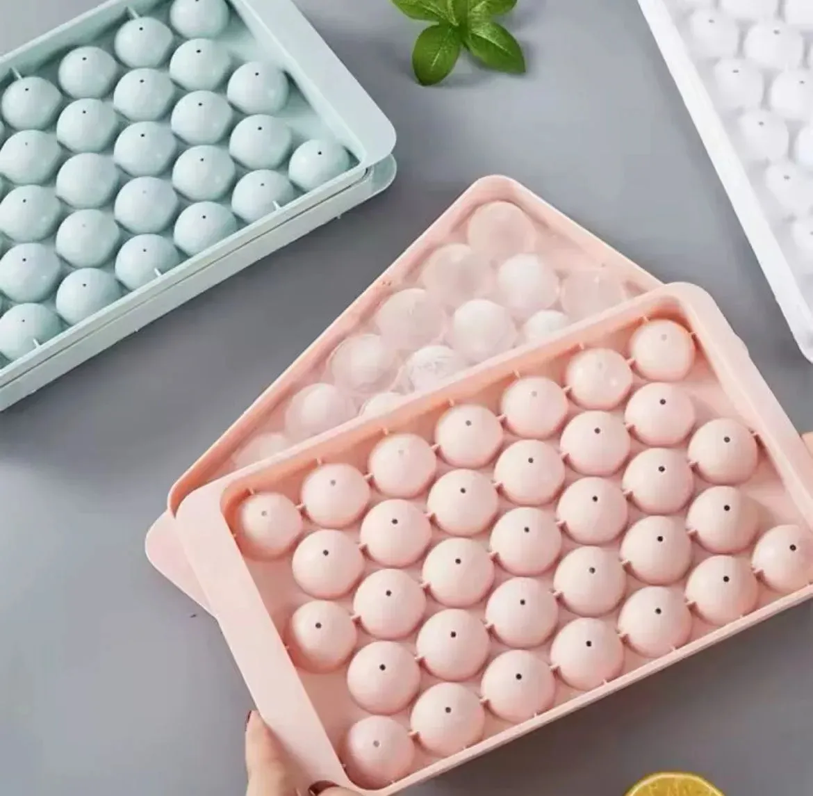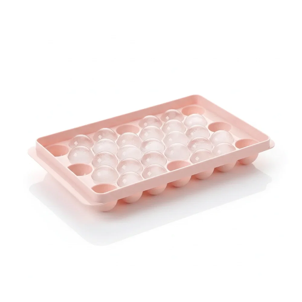 Cubetera de plástico resistente con 33 divisiones circulares y tapa. Ideal como hielera con tapa, molde para hielo o bandeja de cubitos. Permite preparar y conservar hielos de manera práctica e higiénica en el freezer.