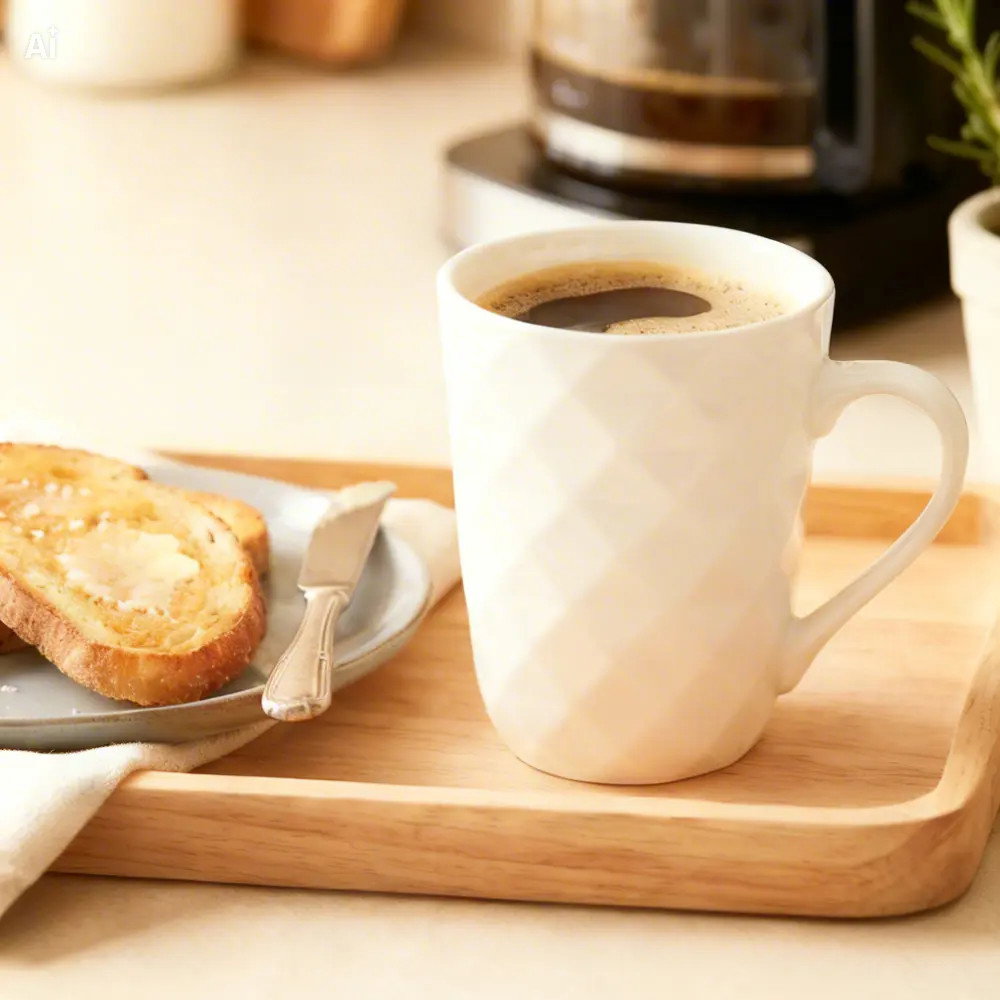 Sumá elegancia y calidez a tus momentos con esta taza de cerámica con relieve. Su acabado brillante y diseño moderno las hacen ideales para cualquier ocasión.